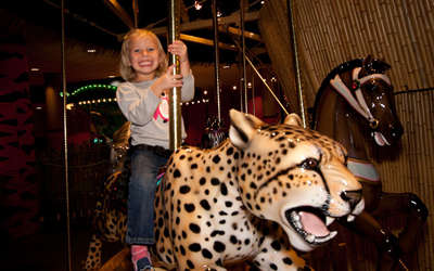 Young and old alike will have great fun on the 28' African-inspired carousel! Features a gorilla, giraffe, lion, cheetah, rhino and more.
