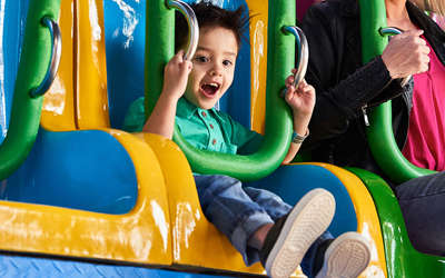 Squeals of joy are a common sound effect as this fun attraction takes young riders up, down and side to side.